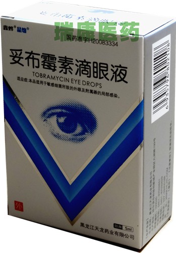 【主要成分】 本品主要成分為妥布霉素,其化學(xué)名為O-3-氨基-3-脫氧-α-O-葡吡喃糖基-(1→6)-O-[2,6-二氨基-2,3,6-三脫氧-α-D-核-己吡喃糖基-(1→4)]-2-脫氧-D-鏈霉胺。